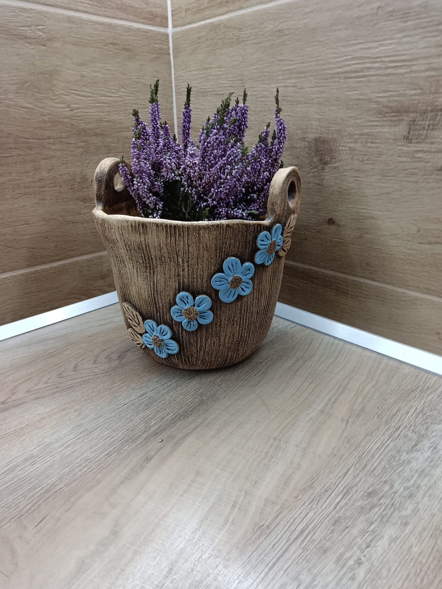 Keramické rustikální vědro - Modrý květy