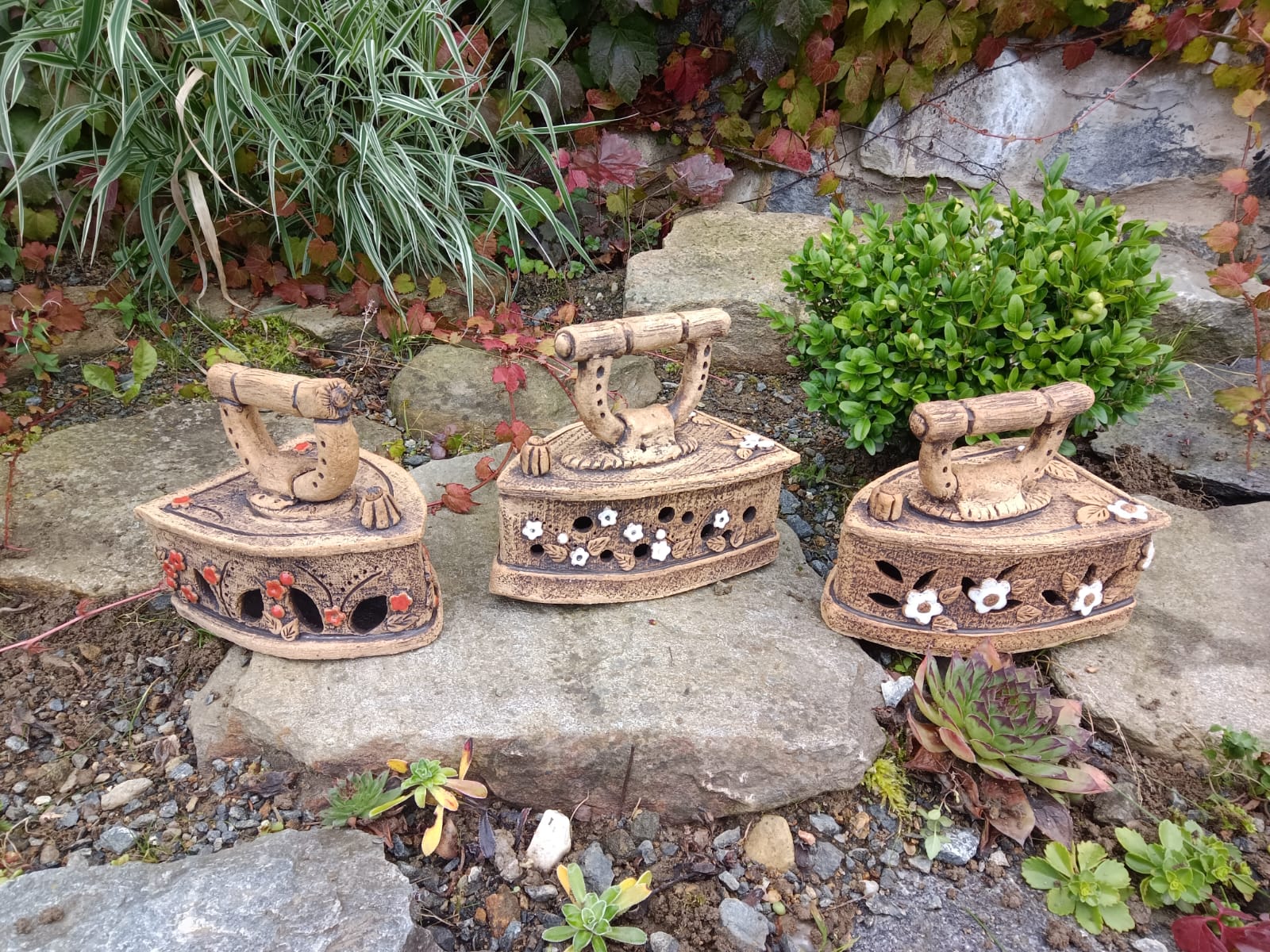 Dekorativní keramické žehličky – originální ruční práce do zahrady i interiéru